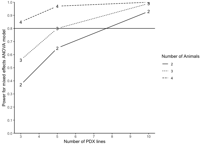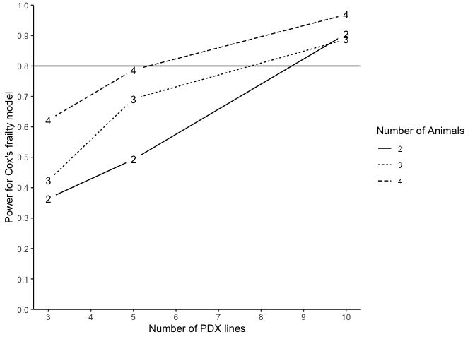 devtools::install_github("shanpengli/PDXpower")Below is a toy example how to conduct power analysis based on a