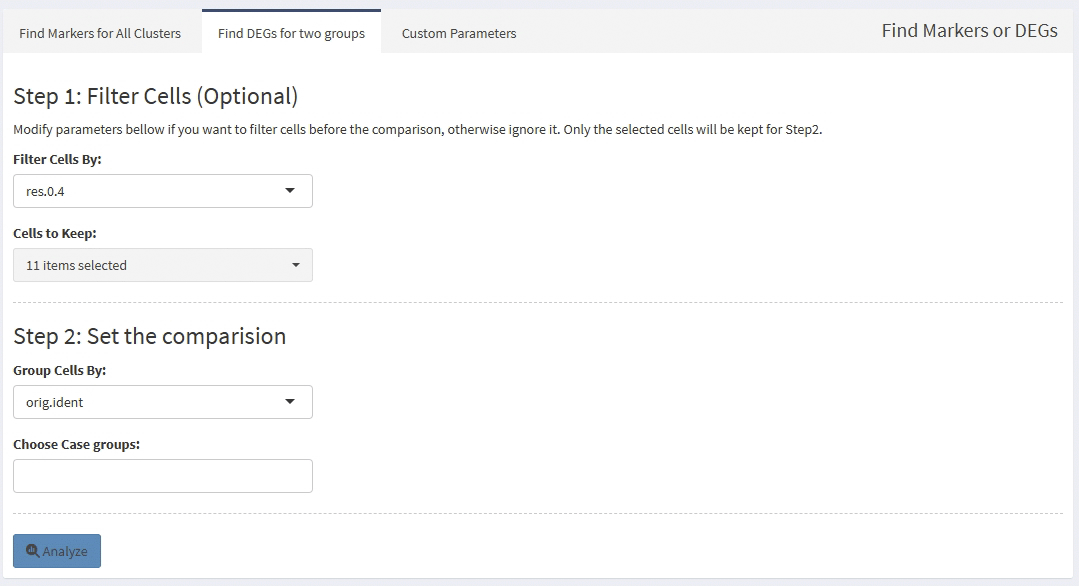 A: - Find Top Genes by Cell: Identifies genes that are highly expressed in individual cells, useful for finding cell-specific markers - Find Top Genes by Mean UMI: Finds genes with high average expression across all cells in a cluster, useful for identifying cluster characteristics