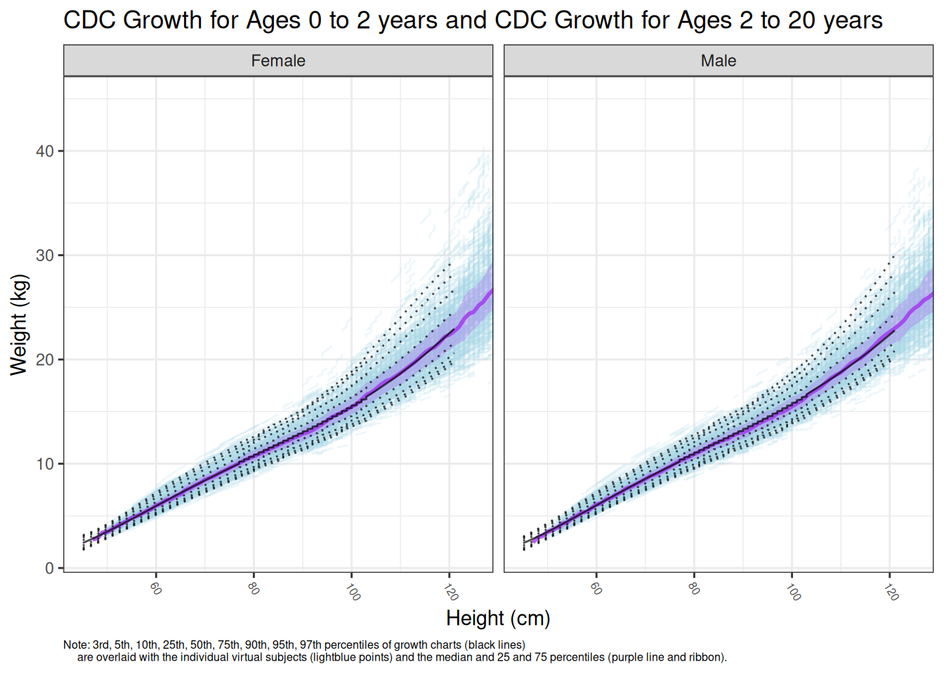 Finally, visually validate that the virtual population is reflective of the CDC growth chart data.
