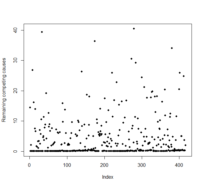plot(D, ylab = "Remaining competing causes", pch = 16, cex = 0.8)