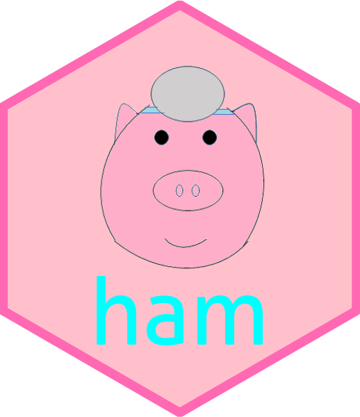 The goal of ham is to provide different modeling approaches to evaluating healthcare programs (or programs in other fields) with regression analysis. This includes standard regression methods like linear (OLS) and logistic regression. And ham adds options for differences-in-differences models as well as interrupted time-series analysis. DID and ITS models offer options for causal modeling. What is unique about ham is that it creates datasets with constructed variables for DID and ITS models, optionally it can add top coded outcome variables, propensity scores, and provides some interpretation of model results. Additionally, Cronbach’s alpha can be calculated for such things as patient surveys. As the logo of Dr. Ham suggests, the ham package can help illuminate your results.