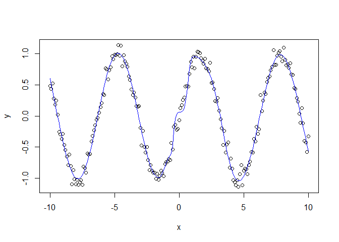 y <- sin(x) + rnorm(length(x), mean = 0, sd = 0.1)