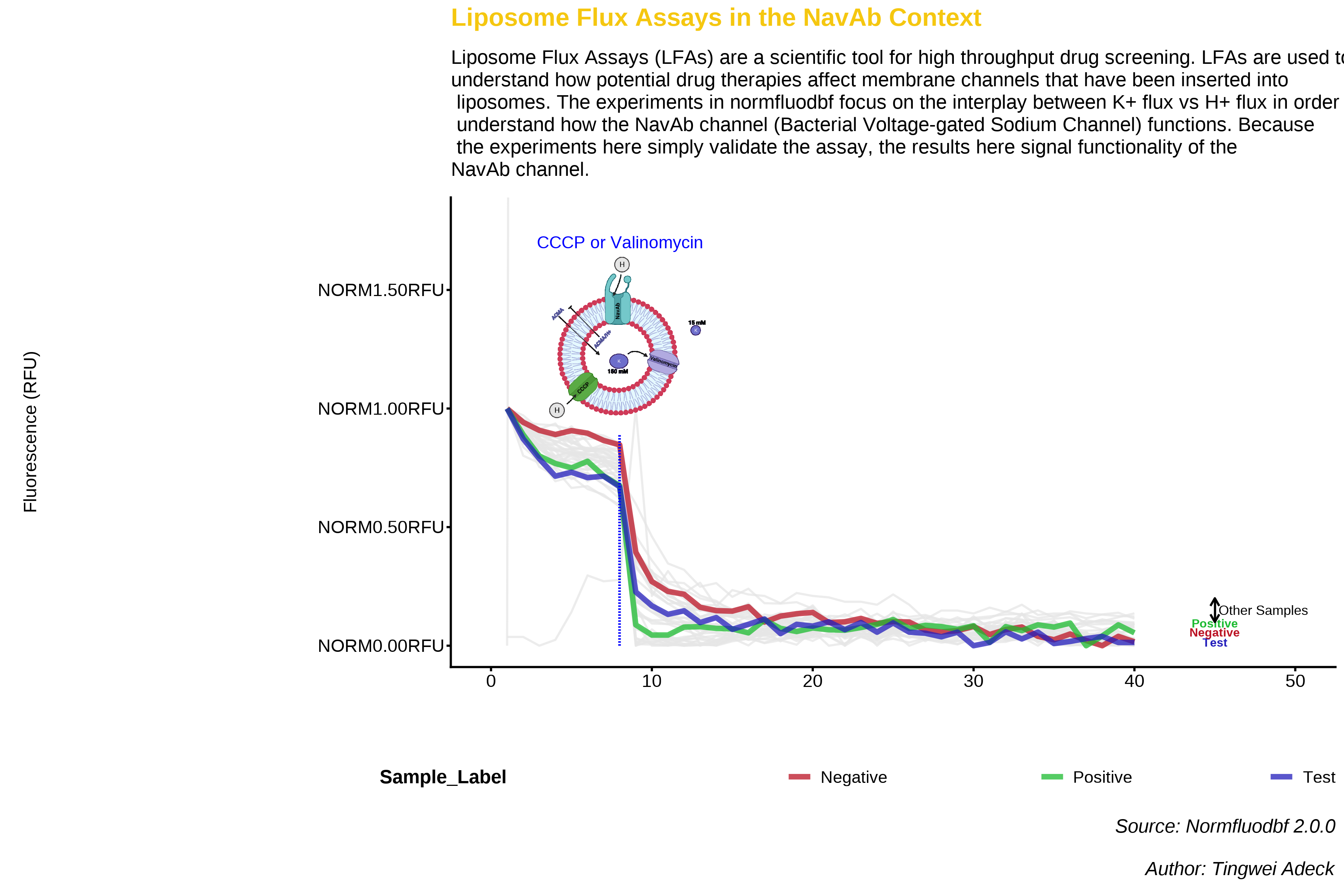 {normfluodbf} is used to clean and normalize DBF and DAT files obtained from liposome flux assay (LFA) experiments performed with the FLUOstar microplate reader. The expectation is this package is not limited to this assay type but other assay types performed with the same instrument. The final data frames obtained from this package are ready for insightful data analysis and for the creation of amazing visuals (using ggplot2) that help in making scientific deductions or making presentations to project stakeholders. This project firmly represents my core belief in the public dissemination of scientific information. My convictions on this idea of public dissemination were driven by the book “What Mad Pursuit” by Francis Crick. Visit {my page} for details on the concept behind the project.