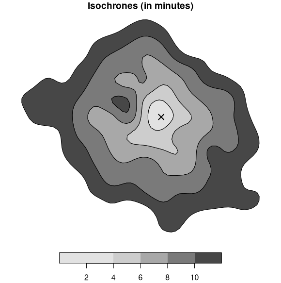(iso <- osrmIsochrone(loc = c(13.43,52.47), breaks = seq(0,12,2), n = 1000, smooth = F))## Simple feature collection with 5 features and 3 fields