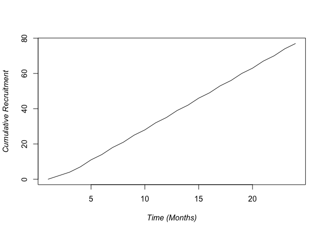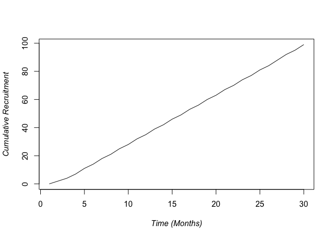recF <- recForcast(N.site,rpm,open.rate,Max.Time=recTime)  #100 patients over 30 months