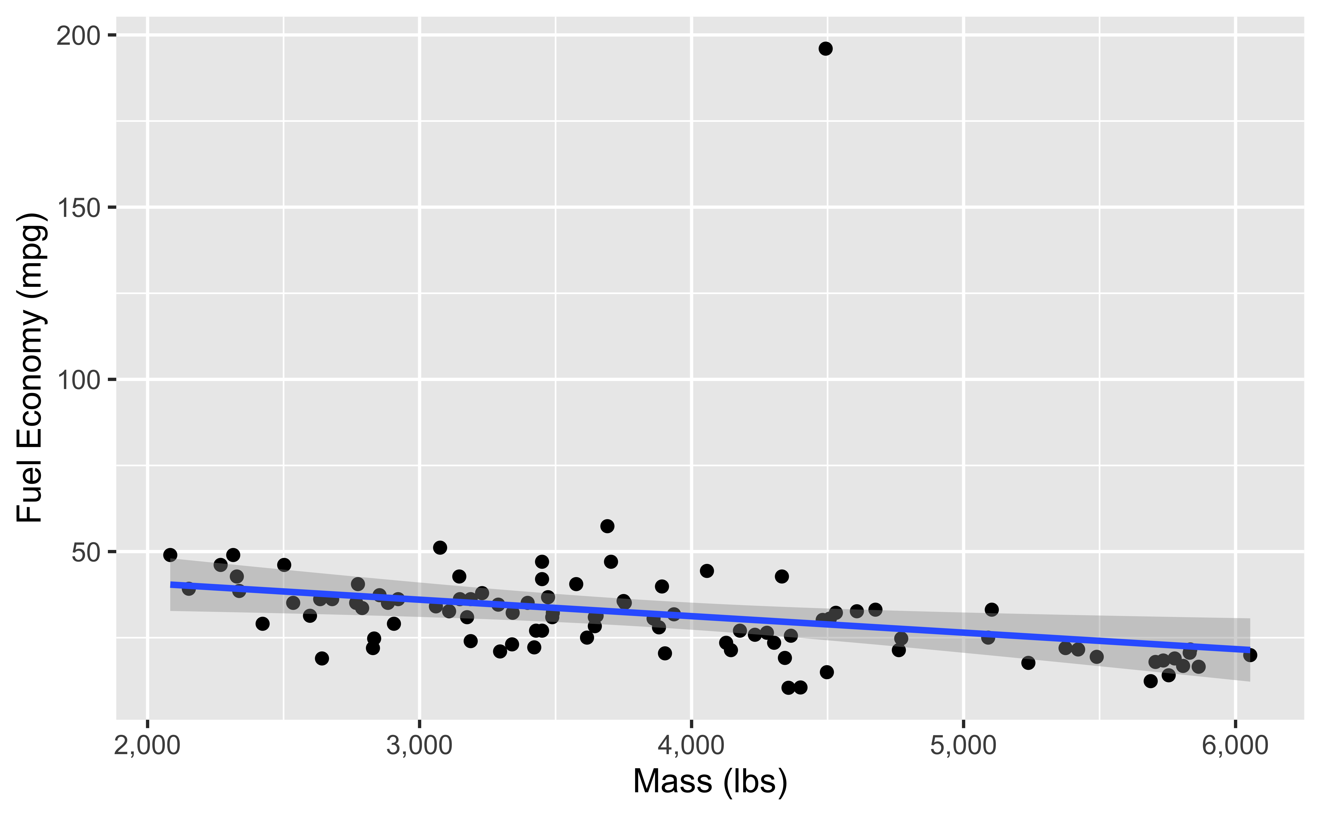 labs(x = "Mass (lbs)", y = "Fuel Economy (mpg)")