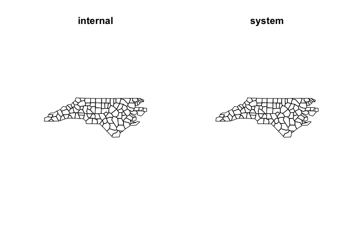 nc_simp_sys <- ms_simplify(nc_sf, sys = TRUE, sys_mem = 8) #sys_mem specifies the amount of memory to use in Gb.  It defaults to 8 if omitted.