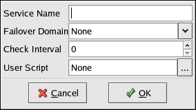 4. Adjust the quantity in the Check Interval field, which sets the interval (in seconds) that the cluster infrastructure checks the status of a service. This field is only applicable if the service script is written to check the status of a service.